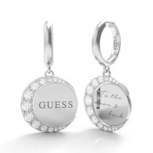 Kolczyki Guess Moon Phases JUBE01192JWRHT/U to piękne i stylowe kolczyki wykonane z wysokiej jakości stali chirurgicznej w kolorze srebrnym. Ich design składa się z kółek na bigiel oraz dodatkowych wiszących blaszek. Jeden z kolczyków ozdobiony jest kryształkami wraz z logo firmy Guess, a na drugim znajduje się napis "To The Moon & Back". Takie rozwiązanie sprawia, że kolczyki Guess Moon Phases są nie tylko bardzo eleganckie, ale również mają swoje znaczenie symboliczne. Biżuteria jest zapakowana w oryginalne pudełko, co sprawia, że jest idealnym prezentem dla kobiety, która ceni sobie modę i styl.