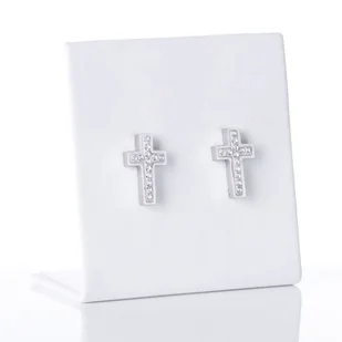 Kolczyki z krzyżykami z cyrkonii Stainless Steel Materiał: stal nierdzewna, cyrkonie Rozmiar: 15 mm Lśniące kolczyki z krzyżykami z cyrkonii i stali szlachet...