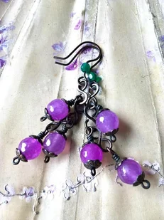 Kolczyki miedziane z agatem i jadeitem. Wymiary kolczyków: 6.2x2 cm. Bigle miedziane ręcznie robione. Waga obu kolczyków to 8.5 grama. Kolczyki wykonałam pra...
