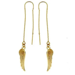 Kolczyki przewlekane SKRZYDŁO- srebro złocone