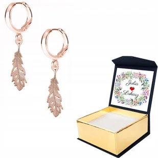 Kolczyki różowe złoto Pióro Piórko + WŁASNY NADRUK