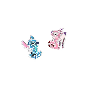 Przepiękne srebrne kolczyki Stich Angel. Wykonane z najwyższej jakości srebra próby 925. Jedyne w swoim rodzaju! Stich na jedno ucho, Angel na drugie!