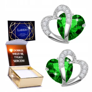 Kolczyki Srebrne 925 Zielone Kryształowe Serca Cyrkonie Serduszka + NADRUK