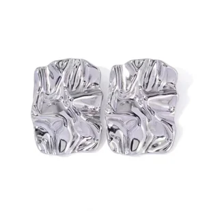 Kolczyki srebrne pogniecione prostokątne - wodoodporna stal szlachetna pokryta srebrem