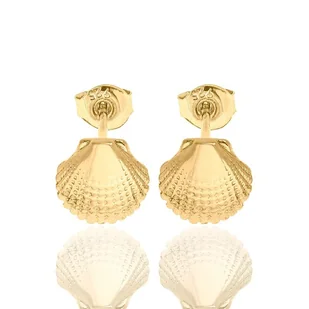 Kolczyki srebrne pozłacane muszelki. Zapinane na sztyfty. Całość wykonana ze srebra 925 pokrytego 24 karatowym żółtym złotem. Muszelki odlewane: 8,5 x 8,5 mm Długość sztyftu: 11,0 mm Biżuteria pakowana jes ...