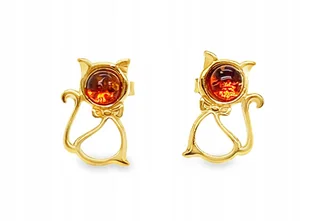 Kolczyki srebrne pozłacane sztyft kotki KOT z bursztynem angielskie Witaj w naszym magicznym świecie bursztynu, gdzie historia spotyka się z elegancją, a tra...