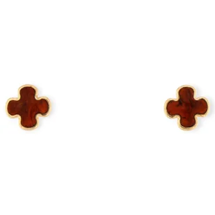 Kolczyki srebrne z bursztynem - Kolczyki koniczyna pozłacane - koniak