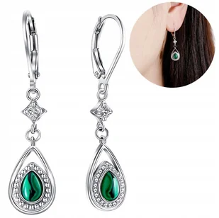 KOLCZYKI SREBRNE Z MALACHITEM DŁUGIE WISZĄCE DLA KOBIETY SREBRO PRÓBA 925