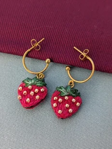 Kolczyki truskawki – pełne koloru, słodyczy i letniego blasku. Wykonane metodą haftu ręcznego z z dodatkiem metalicznych koralików imitujących pestki. Te drobne błyszczące detale odbijają światło przy każdym ...
