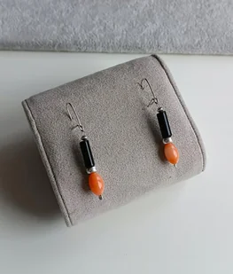 KOLCZYKI WISZĄCE POMARAŃCZOWY KORAL ONYKS SREBRO 925 BEAGLE ZAMKNIĘTE