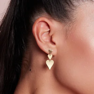 Kolczyki wiszące serca srebro pozłacane na prezent Dzień Mamy urodziny