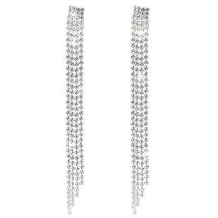 Kolczyki długie srebrne z cyrkoniowymi frędzlami Smukłe kolczyki wieczorowe z pasmami błyszczących cyrkonii tworzą kaskadę, która pięknie wydłuża szyję i odb...