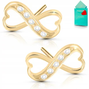 Kolczyki wkrętki srebrne pozłacane złote nieskończoność serca 925 sztyfty
