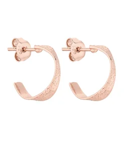 Złote kolczyki wstążki. Całość wykonana ze srebra 925 powlekanego 24 karatowym różowym złotem. Zapinane na sztyft. Kolczyki posiadają zapięcia (baranki). Śre...