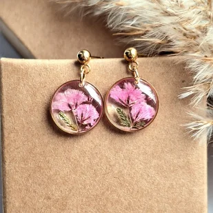 Kolczyki z suszonymi kwiatami różowej gipsówki