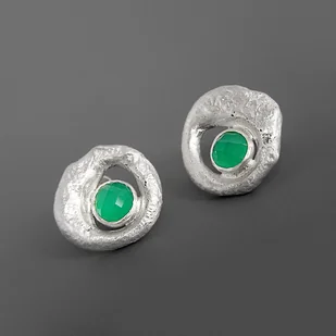 Kolekcja Pastelove Unikatowe asymetryczne kolczyki wykonane ze srebra próby 925 z zielonym agatem. Topione srebro, powierzchnia szczotkowana - satynowe, oszronione wykończenie powierzchni. Wymiary k ...