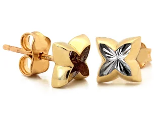Kolczyki złote na sztyfcie kwiatki błyszczące Kolczyki złote 375 na sztyfcie kwiatki błyszczące wykonane są z żółtego i białego złota o próbie 0.375, ważą 1....