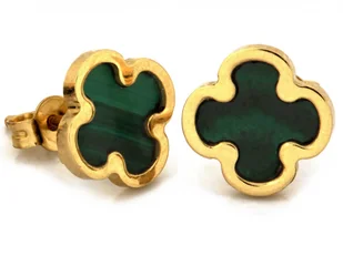 Kolczyki złote kwiatek z malachitem na sztyfcie Odkryj piękno i elegancję z subtelnymi kolczykami z kwiatkiem z malachitem, wykonanymi z najwyższej jakości z...