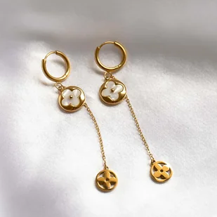 Kolczyki długie luksusowe premium lv koniczyna ze stali szlachetnej Materiał: stal chirurgicznaKolor: złoty Motyw: koniczynka i romb Kolczyki luksusowe premium LV to nie tylko dodatek do ubioru, ale przede wszystkim sposób na wyrażenie swojej osobowości i indywidualności. Są idealnym wyborem na specjalne okazje, takie jak eleganckie wieczory, romantyczne kolacje czy ważne spotkania biznesowe, dodając każdej stylizacji nutę prestiżu i klasy.