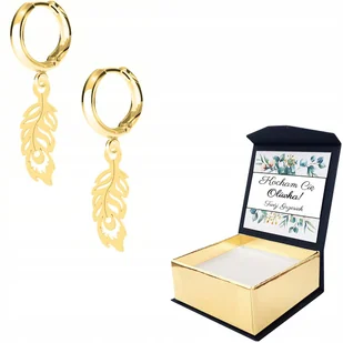 Kolczyki złote Pawie Pióro Piórko WŁASNY NADRUK