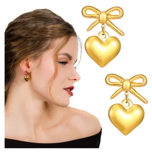 Kolczyki Złote Wiszące Serca Wstążka ze Stali Chirurgicznej 316L Pozłacane // Kolczyki złote serca ze STALI CHIRURGICZNEJ długie wiszące POZŁACANE 18K ✨ Najważniejsze cechy: ✔ Złote kolczyki ✔ Ze sali chirurgicznej 316L ✔ Lekkie i wygodne ✔ Zapięcie typu sztyft Długie, wiszące kolczyki w kształcie serc z ozdobną wstążką zachwycają subtelnym blaskiem i romantycznym charakterem. Wykonane z hipoalergicznej stali chirurgicznej i pozłacane 18 karatowym złotem, pięknie odbijają światło, nie ciemnieją i są odporne na codzienne użytkowanie. Delikatna konstrukcja nie obciąża ucha, a bezpieczne, zamknięte zapięcie trzyma biżuterię na miejscu przez cały dzień. Wybierz je dla siebie lub podaruj bliskiej osobie – i pozwól, aby każdy dzień miał odrobinę złotego blasku.