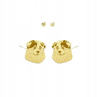 Kolczyki Złote z psem Owczarek Australijski 925 Sztyfty Prezent DEDYKACJA