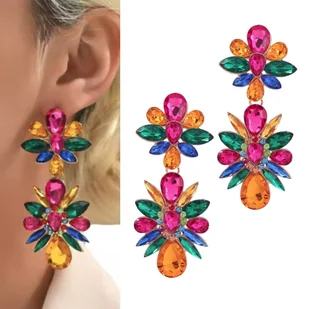 Kolczyki kolorowe z dużymi aplikacjami Długie, efektowne kolczyki z dużymi cyrkoniami w niezwykłej kolorystyce znajdziesz tyko w Naszej ofercie. Te model w k...