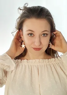 Kolczyki wykonane ze srebra z gwiazdką i księżycem. Wymiary gwiazdki: 2,8 cm. Wymiary księżyca: 2,7 cm. Całkowita długość kolczyków 5,2 cm. Waga:5,8 gr.