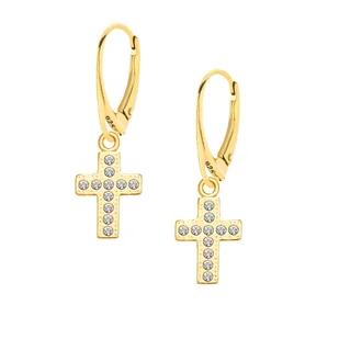 Kolczyki ze srebra próby 925 pozłacanego 24-karatowym złotem z zawieszką w kształcie krzyżyka wysadzanego kryształkami Swarovski. Wielkość zawieszki: 15 mm D...
