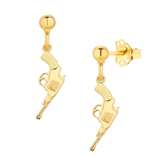 Kolczyki ze srebra próby 925 pozłacanego 24-karatowym złotem Kolczyki zostały wykonane z zapięcia typu sztyft oraz zawieszki w kształcie rewolweru Długość ko...