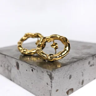Kolczyki koła o nieregularnym kształcie, bardzo stylowe i niebanalne. Kolczyki są na sztyfcie z zatyczkami typu baranki. Wykończenie na błysk. Wykonałam je w całości ręcznie ze srebra próby 925, pozłociła ...