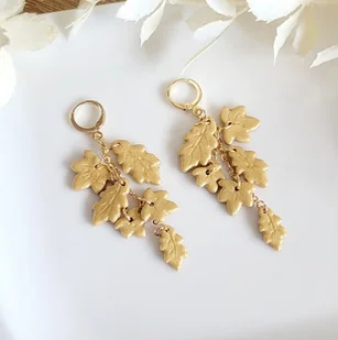 NOWOŚĆ! - Kolczyki jesienne listki - bigle złote