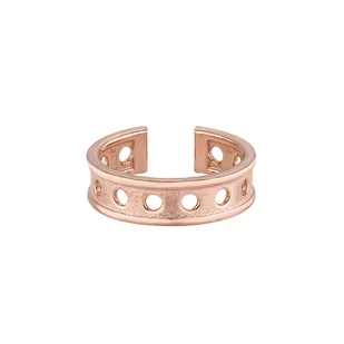 Złota ozdobna nausznica w całości wykonana ze srebra 925 powlekanego 18 karatowym różowym złotem. Szerokość 3 mm Produkt o wadze poniżej 5 g. Zapakowana w eleganckie pudełeczko z logo marki. Posiada logowaną ...