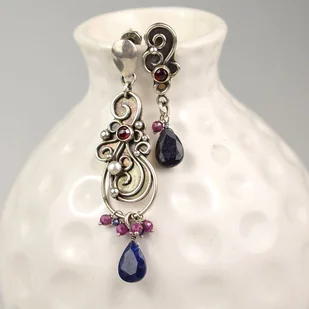 Para nie do pary - kolczyki srebrne z szafirem, rubinem, granatem i perłą