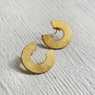 Kolczyki koła wykonałam ze srebra i pozłociłam 24 ct złotem. Wykończyłam je na matowo. Są bardzo stylowe i niebanalne. Kolczyki są na sztyfcie z zatyczkami typu baranki. Charakterystyka: materiał : srebro 92 ...
