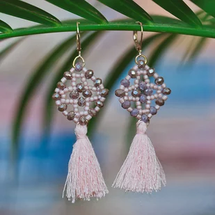 Różowe kolczyki z koralików z chwostami