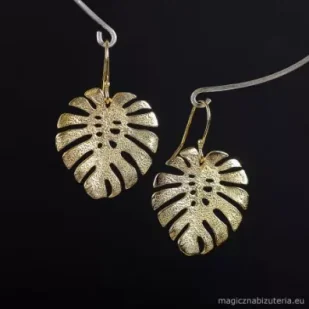 Sotis Liść Monstery, kolczyki pozłacane Ag925 + Au 24kar, 11g