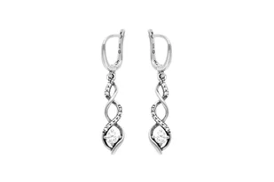Srebrne długie kolczyki przeplatane z cyrkoniami Srebrne kolczyki emanują subtelnym urokiem – ich smukły, przeplatany kształt w gładkim i oksydowanym srebrze próby 925 pięknie wydłuża linię szyi. Centralnie osadzone, lśniące cyrkonie rozświetlają twarz, dodając blasku każdemu spojrzeniu. Te piękne cyrkonie mieniące się w kolczykach, zostały "zakute" jak diamenty, dzięki wykorzystaniu tej metody kamienie nie wypadają. Lekka konstrukcja zapewnia komfort noszenia przez cały dzień, a klasyczne zapięcie gwarantuje bezpieczeństwo. To doskonały wybór zarówno do codziennych, jak i wieczorowych stylizacji – idealne na prezent, który oczaruje obdarowaną osobę Dzięki oksydowaniu uzyskujemy ciemniejsze zabarwienie, oraz zabytkowy charakter biżuterii.