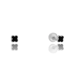 Srebrne kolczyki pr. 925 Wzór: Koniczynka Kamień: Czarny kamień Typ zapięcia: Sztyft Materiał: Srebro rodowane Powłoka: