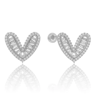 Srebrne kolczyki pr. 925 Wzór: Serce Kamień: Cyrkonia Typ zapięcia: Sztyft Materiał: Srebro rodowane Powłoka: