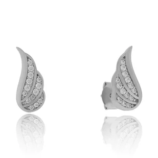 Srebrne kolczyki pr. 925 Wzór: Skrzydła Kamień: Cyrkonia Typ zapięcia: Sztyft Materiał: Srebro rodowane Próba: 925 Szerokość [mm]: ok. 6.3 Wysokość [mm]: ok. 13.5