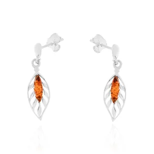 Srebrne kolczyki z bursztynem listki sztyfty pr. 925