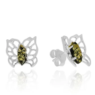 Srebrne kolczyki z bursztynem sztyft motyl pr. 925
