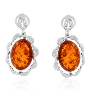 Srebrne kolczyki z bursztynem sztyft pr. 925