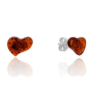 Srebrne kolczyki z bursztynem sztyft serce pr. 925