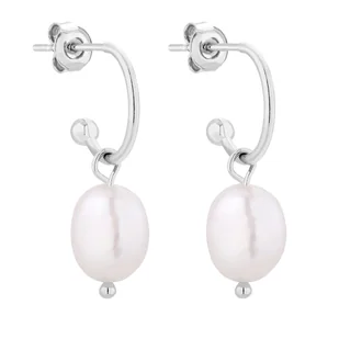 Srebrne kolczyki z naturalnymi nieregularnymi perłami. Całość wykonana ze srebra 925. Zapinane na sztyft. Kolczyki posiadają zapięcia (baranki). Długość kolc...
