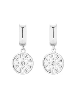 Srebrne kolczyki z rozetką zapinane na bigle. Całość wykonana ze srebra 925. Długość kolczyków 2,8 cm Długość bigla 1,5 cm Rozeta 1,3 cm Zapakowane w eleganc...