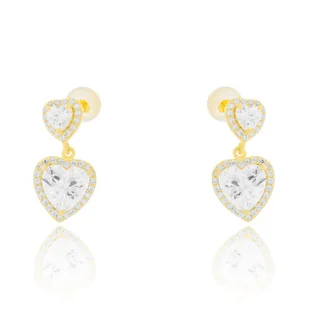 Srebrne kolczyki pr. 925 Wzór: Serce Kamień: Cyrkonia Typ zapięcia: Sztyft Materiał: Srebro pozłacane Powłoka: