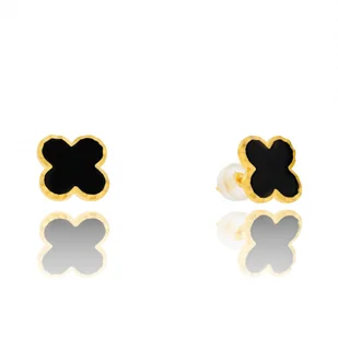 Srebrne kolczyki pr. 925 Wzór: Koniczyna Kamień: Onyx Typ zapięcia: Sztyfty Materiał: Srebro pozłacane Powłoka: