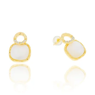 Srebrne kolczyki pr. 925 Wzór: Inny kształt Kamień: Cyrkonia, masa perłowa Typ zapięcia: Sztyft Materiał: Srebro pozłacane Powłoka: